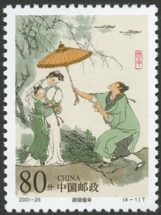 宣傳中國傳統(tǒng)文化,除了以戲曲的方式,民間故事的講述也很重要。2001年發(fā)行的《民間傳說——許仙與白娘子》特種郵票(一套4枚),便是以“講故事”的方式來介紹其內(nèi)容的。郵票圖案,分別描繪了許仙與白娘子游湖借傘、仙山盜草、水漫金山、斷橋相會的場面。