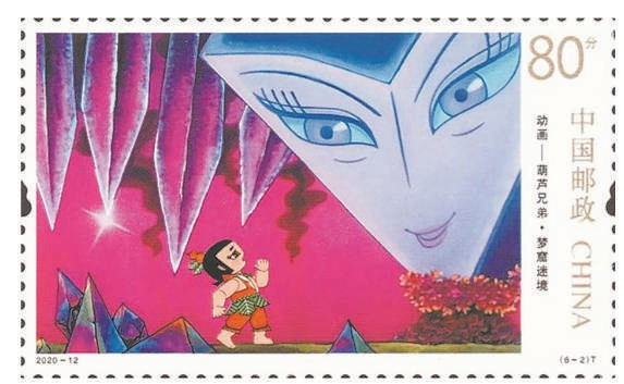 除了白素貞外,動漫中的蛇,也就是呈現(xiàn)于孩子們眼中的蛇,也是可愛的。2020年發(fā)行的動漫郵票《葫蘆兄弟》,就有很多“蛇精”形象。
