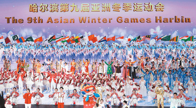 二月七日,第九屆亞洲冬季運(yùn)動(dòng)會(huì)開幕式在黑龍江省哈爾濱市舉行。圖為演員在開幕式上表演。新華社記者 楊 磊攝