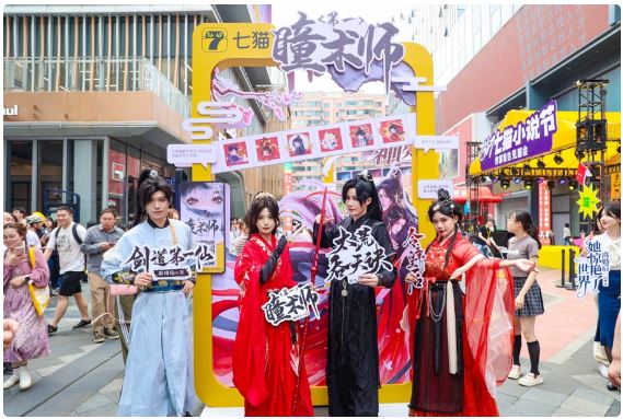 《無敵天命》是七貓宗師作家青鸞峰上的最新連載作品,七貓縱橫平臺點擊量近8000萬,在讀人數(shù)200萬,小說節(jié)打造了書中“觀玄書院”場景,邀請coser演繹書中男主角葉天命,書迷們紛紛在現(xiàn)場與“葉天命”合影,留下自己與小說IP同框的瞬間。