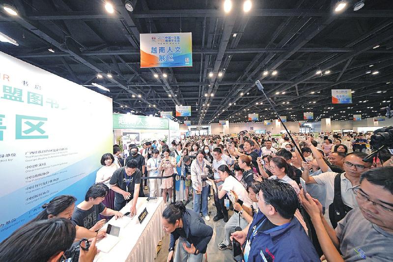 7月5日,劉楚昕新書《泥潭》簽售會在2025中國—東盟圖書文化周現(xiàn)場舉行。廣西出版?zhèn)髅郊瘓F(tuán) 供圖