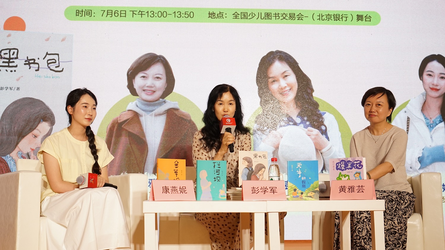 7月6日,南京大學(xué)出版社攜手兒童文學(xué)作家彭學(xué)軍在江蘇書(shū)展上舉辦了“童年,成長(zhǎng)與閱讀——兒童文學(xué)作家彭學(xué)軍《黑書(shū)包》新書(shū)發(fā)布暨讀者見(jiàn)面會(huì)”。本次活動(dòng)由南京大學(xué)出版社主辦,兒童文學(xué)作家彭學(xué)軍,南京市語(yǔ)文學(xué)科帶頭人、小學(xué)語(yǔ)文教培員黃雅蕓,南京市櫻花小學(xué)語(yǔ)文教師康燕妮參加活動(dòng)。三位嘉賓在對(duì)談中分享了成長(zhǎng)與閱讀的收獲和體驗(yàn),并且密切關(guān)注讀到青春期孩子的成長(zhǎng)與心理健康,希望孩子們能夠從閱讀中獲得成長(zhǎng)的力量。