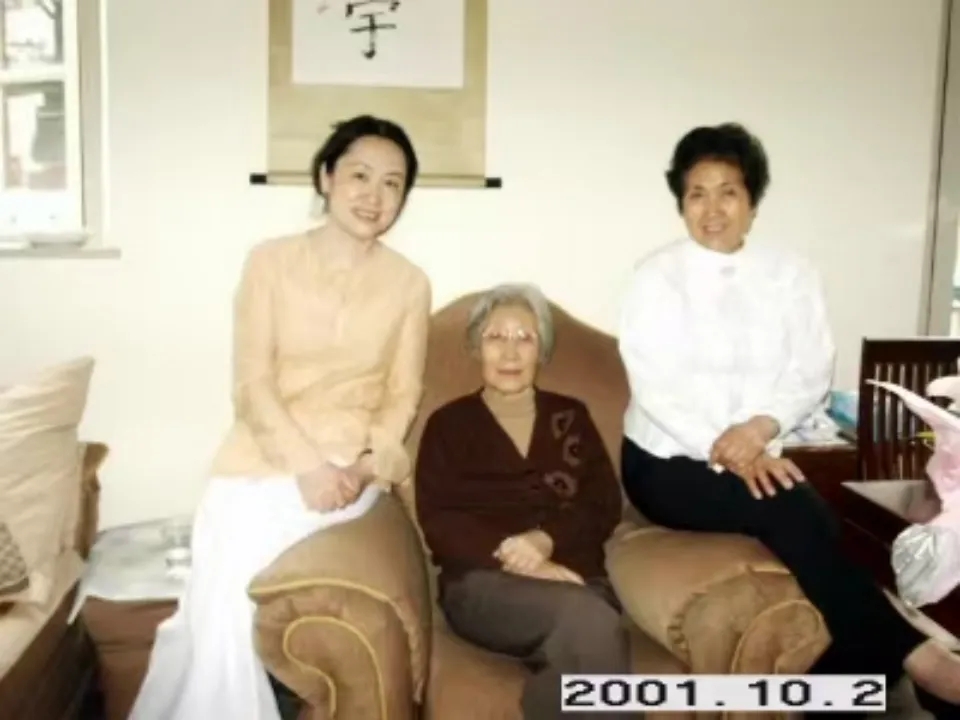 2001年在上海拜訪穆時(shí)英妹妹穆麗娟先生。右一,穆麗娟與戴望舒女兒戴詠素女史
