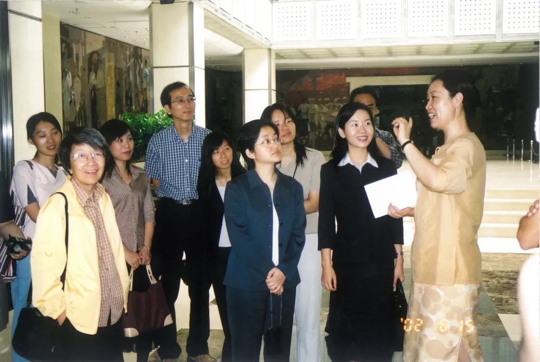 2004年于文學(xué)館接待香港中文大學(xué)代表團(tuán),前排左一小思(盧瑋鑾)教授、左二張?jiān)伱方淌?、左三何杏楓教?/span>