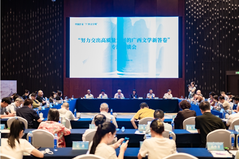 在“努力交出高質(zhì)量發(fā)展的廣西文學(xué)新答卷”專題座談會(huì)上,受邀作家與廣西本地作家代表齊聚一堂,共同探討新大眾文藝視野下廣西文學(xué)發(fā)展的未來。座談會(huì)由廣西作協(xié)黨組書記、副主席程小華主持。