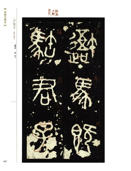 《石鼓文批注》是畫(huà)家、中國(guó)國(guó)家畫(huà)院國(guó)畫(huà)專(zhuān)業(yè)委員會(huì)研究員吳悅石先生多年耕耘研究所著。此書(shū)以“先鋒本”拓本為底本,進(jìn)行逐字釋讀與批注,為讀者提供可靠的原始文本參照;運(yùn)用“雙鉤廓填”技法復(fù)原146處殘損文字,最大程度重現(xiàn)石鼓文原貌;以“頁(yè)邊注、字間補(bǔ)、旁注疑”的獨(dú)特批注體系,“拓本+臨本+匯總表”的立體呈現(xiàn)體系,為讀者建構(gòu)了縱貫古今的通衢、神接千載的津梁。書(shū)中240余處文字的精微釋讀,既還原先秦生活場(chǎng)景,又梳理漢字演變脈絡(luò),堪稱(chēng)連接古今的“文字橋梁”。為社會(huì)各界學(xué)習(xí)臨摹、研究考釋《石鼓文》提供了全新的學(xué)術(shù)視角。