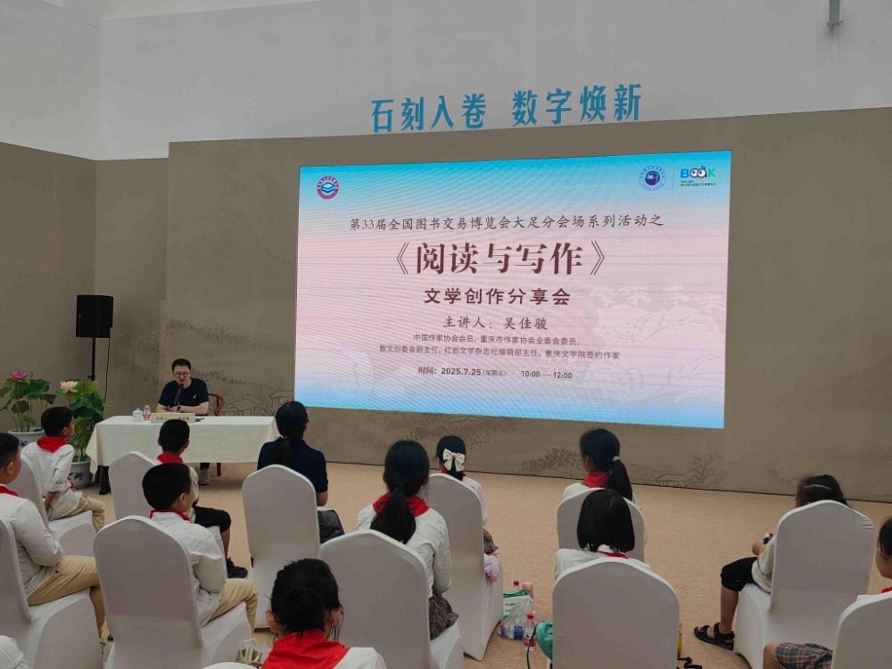 ▲“吳佳駿《閱讀與寫作》文學(xué)創(chuàng)作分享會(huì)”在第33屆書博會(huì)大足分會(huì)場(chǎng)內(nèi)開講。記者 李晟 攝