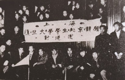 1935年一二·九運動爆發(fā),復旦大學學生赴京請愿討逆團出發(fā)前在上海北站合影。 復旦檔案館藏