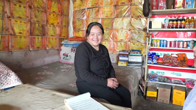 來到王對平家時(shí),王對平和丈夫已經(jīng)站在門前迎接我們。那是非常晴朗的一天,天藍(lán)如洗,空氣清透,天色將王對平家房屋背后的大樹襯得格外青翠。簡樸的庭院里有一把撐開的羅馬傘,傘后的水泥墻上用綠色的油漆寫著“小賣部”三個字。夫妻二人請我和同事進(jìn)屋,那是一間干凈、整潔的農(nóng)家小商鋪,除商品陳列架外,還是一間標(biāo)準(zhǔn)的起居室。最引人矚目的是緊貼火炕的一面墻壁,那面墻上貼滿了獎狀,鮮艷的橘紅色令人無法忽視。
