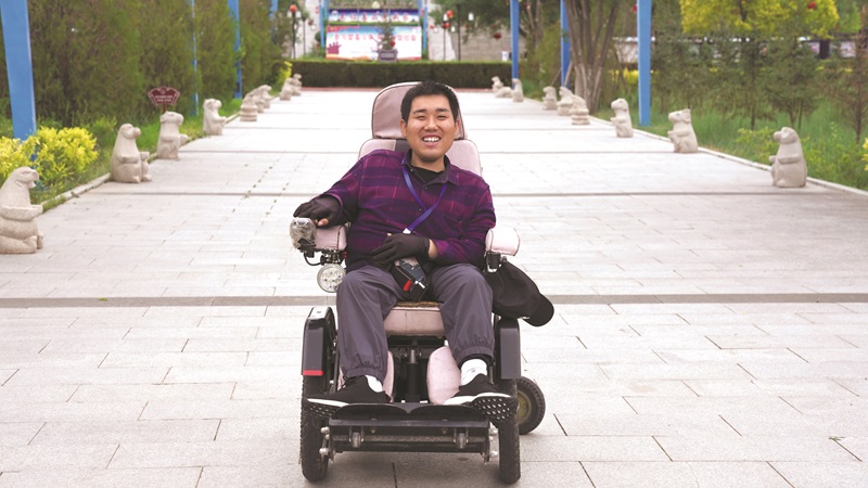 2018年初,馬駿23歲生日那天,父親刷爆信用卡,為他買了一輛電動輪椅。馬駿坐在上面試了試,可以向前,也可以向后,還可以依托它整個人“站立”起來。那一刻,馬駿覺得,“身體里的每一縷血液都在歡快地跳動”。馬駿坐著電動輪椅,獨(dú)自走遍了縣城里每一個沒有障礙的角落。有一次,他爬上一座斜度很小的山,第一次看到了縣城的全貌。他在輪椅上再次“站”了起來,大聲地喊了一聲“喂”!