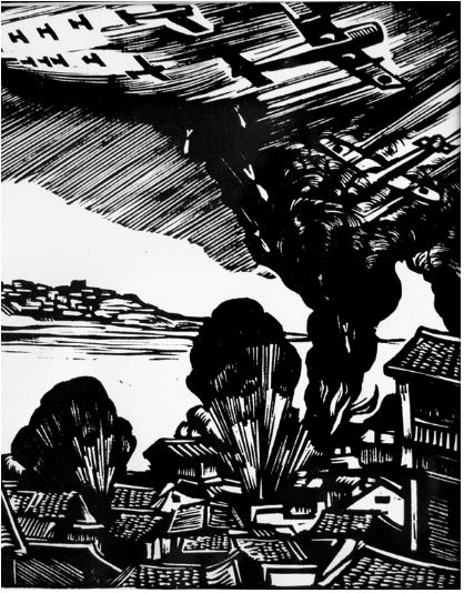 1938年7月,他們在重慶市商會禮堂舉辦的“七七抗戰(zhàn)一周年抗戰(zhàn)木刻畫展”被視為大后方抗戰(zhàn)木刻運動從興起走向全面發(fā)展的標志。展覽開幕第二天,重慶《國民公報》即以《大時代中的藝術(shù)·木刻在渝初次展覽》為題刊發(fā)了長篇特寫,文中寫道:“一個團結(jié)而集體地把多量的木刻杰作呈現(xiàn)在重慶士人面前,在重慶還是破題兒的第一遭。因為它是一種新興藝術(shù)而又是以抗戰(zhàn)為題材的作品,所以昨天前往參觀的人實在不在少數(shù),統(tǒng)計下來觀眾一天之內(nèi)不下千余人。木刻共有一百七十余幅,同時木刻畫集也在展覽之列。參加展覽的有劉峴、酆中鐵、王大化、劉鳴寂、馬達、黃云等作家十余人,以酆中鐵、王大化的作品最多。他們都把握著時代,針對著‘抗敵’為前程的。這些藝人們用盡心血戳出來的東西,是充分暴露敵人的殘酷,同胞們的受辱。力的演出,我們要吶喊,我們要怒吼!每幅畫讓你興奮,讓你悲憤,讓你痛心,緊緊地刺激你的心坎?!?/p>