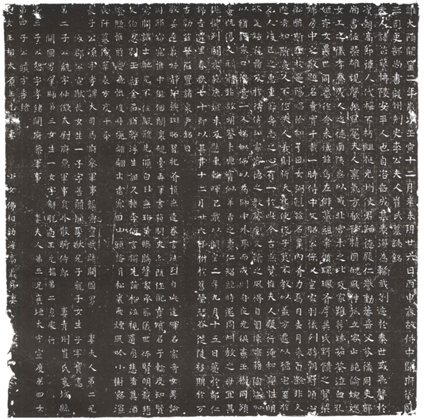 崔芷蘩去世在隋開皇二年(582),又是一個(gè)嶄新的時(shí)代,由于崔仲方的功績,博陵崔氏再度崛起。崔芷蘩的喪禮很可能是哥哥崔宣猷或侄子崔仲方主持完成。她的墓志尺寸達(dá)到驚人的81×82厘米,遠(yuǎn)超家族中的男性成員。比如她的叔叔崔孝直的墓志尺寸是73×71厘米,哥哥崔宣度的墓志尺寸為63.5×64厘米。并且,《崔芷蘩墓志》的尺寸極有可能大于《李希仁墓志》。盡管《李希仁墓志》的具體情況尚未刊布,但李希仁的哥哥李希宗的墓志也不過62×62厘米。今已知尺寸最大的北朝女性墓志當(dāng)屬《魏瑤光寺尼慈義墓志》,為83×84厘米。志主高英生前曾是北魏宣武帝元恪的皇后。換言之,崔芷蘩的墓志大小幾與皇后相近。但是她本人生前未曾得到任何加封,死后也沒有追贈(zèng),因此如此“異常”的尺寸只有可能出自喪家私人行為。也許是因?yàn)榇拗俜叫鲁瘷?quán)貴的地位,也許是崔宣猷出于對(duì)最后一位姊妹的痛悼,《崔芷蘩墓志》才呈現(xiàn)出如今面貌。