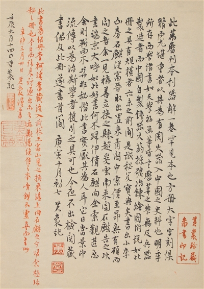 《劫余古艷:來(lái)燕榭書跋手跡輯存》,黃裳著,大象出版社2008年4月第1版。列入李輝主編的“大象名家珍藏”。方形12開(kāi)本,上下兩冊(cè),筒子葉線裝,彩印。配布面硬板書盒,其色彩為土黃與深棕兩色搭配,有清貴沉靜之氣。盒面正中貼一長(zhǎng)方形書名簽,壓印黃裳自題“劫余古艷”四字。打開(kāi)書盒,持一卷在手,翻動(dòng)書頁(yè),見(jiàn)序跋長(zhǎng)長(zhǎng)短短,墨跡黑黑紅紅,藏印大大小小,明刻清刻高清再現(xiàn)的書影與墨色,都吸引你將目光迎上前去,細(xì)細(xì)欣賞。黃裳喜在自己的稀見(jiàn)藏本上手寫題跋,而且常常一寫再寫,使得不同的筆跡與墨色、不同的時(shí)間與心情,奇妙地并置在一書乃至一頁(yè)之內(nèi),而所有這些鉛印整理本或黑白影印本都無(wú)法傳達(dá)的霜楮松煙,《劫余古艷》都如舊如真地再現(xiàn)出來(lái)。