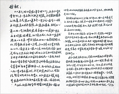 十八年了,我計算您的年齡快七十了。如您還健康,相信在一二年以內(nèi)一定能看到您最喜歡的一個最幼的兒子,而且使您很滿意。他已長大成人,而且十八年來,始終如一地干著一件為了您和中國的一切受苦受難的人們謀幸福、求自由的事情。這個光榮的事業(yè),有無數(shù)的人們,像您兒子一樣的干著。他們更流了無數(shù)的血。但是現(xiàn)在已經(jīng)獲取了初步的成功,這就是把日本強盜打敗,并使中國開始走上和平民主團結(jié)統(tǒng)一的道路。我們都是人民的子弟兵!而在許多地方的受苦受難的老百姓,男的女的都翻了身,從受壓迫受窮變成自由幸??鞓返娜?。