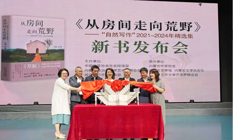 啟動儀式上,《民族文學》雜志社二編室主任、編審安殿榮向呼倫貝爾市文聯(lián)、呼倫貝爾市圖書館、《駿馬》編輯部和呼倫貝爾當?shù)匚膶W愛好者們捐贈《民族文學》雜志珍藏本。滿全發(fā)布了內蒙古自治區(qū)第三批生態(tài)文學推薦書目。同期還舉辦了《從房間走向荒野——“自然寫作”2021—2024年精選集》新書發(fā)布會。內蒙古文學雜志社社長、《草原》雜志主編賈翠霞介紹并分享了該書出版過程,以及近年來《草原》雜志推動生態(tài)文學創(chuàng)作的具體舉措。