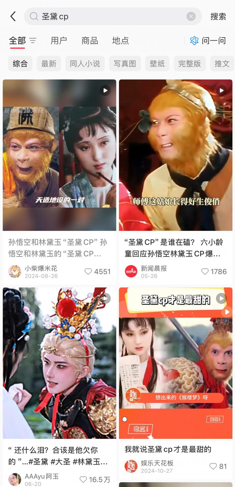 早在今年上半年,“圣黛CP”這個(gè)奇特的稱謂忽然在互聯(lián)網(wǎng)上流行起來(lái)。有網(wǎng)絡(luò)博主將《西游記》里的孫悟空與《紅樓夢(mèng)》里的林黛玉湊成一對(duì)情侶。這個(gè)新穎而奇怪的組合迅速吸引了廣大網(wǎng)友的注意力。對(duì)此,有媒體記者就相關(guān)內(nèi)容詢問(wèn)86版《西游記》孫悟空扮演者六小齡童,他給出了較為正面的反饋,再次拉高了“圣黛CP”的熱度。有網(wǎng)友戲稱,曹雪芹和吳承恩去世多年后,發(fā)現(xiàn)居然成親家了。