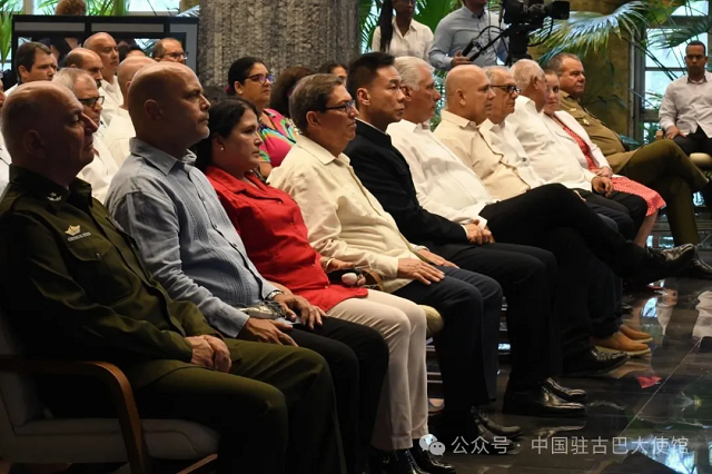 古共中央第一書(shū)記、國(guó)家主席迪亞斯-卡內(nèi)爾,中央政治局委員、中央組織書(shū)記莫拉萊斯,外交部長(zhǎng)羅德里格斯等古巴黨政領(lǐng)導(dǎo)人,中國(guó)駐古巴大使華昕,中資企業(yè)和華僑華人及留學(xué)生代表,多國(guó)駐古使節(jié)及各界友好人士約200人出席。