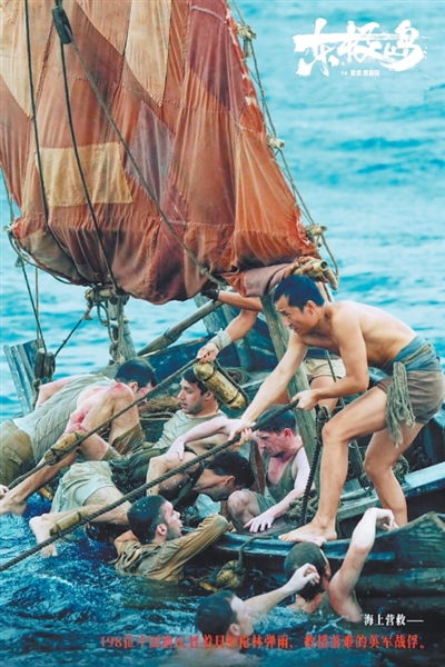 如何再現(xiàn)消逝的歷史時空,是歷史題材藝術(shù)創(chuàng)作的難題?!独锼贡就璩翛]》以史料見長,除了使用珍貴的歷史影像,還嘗試用動畫來還原沉船事件?!稏|極島》則充分發(fā)揮類型片優(yōu)勢,以精湛特效制造逼真的歷史現(xiàn)場,構(gòu)建了國產(chǎn)銀幕上少見的壯闊海洋影像。漁船在海浪與炮火中穿行,漁民們以血肉之軀搏擊怒海,充滿著蕩氣回腸的史詩感。越是充分展現(xiàn)東極島所蘊含的蓬勃、流動的生命力,讓觀眾感受到祖國山河的美好,越是能折射侵略者的無情與殘忍。