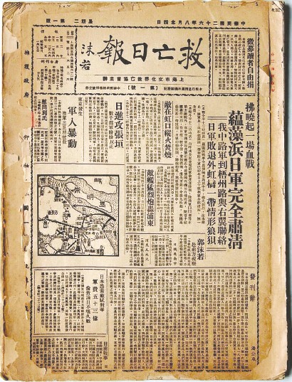 1937年8月24日出版的《救亡日報》第一號。蔣迪雯 攝