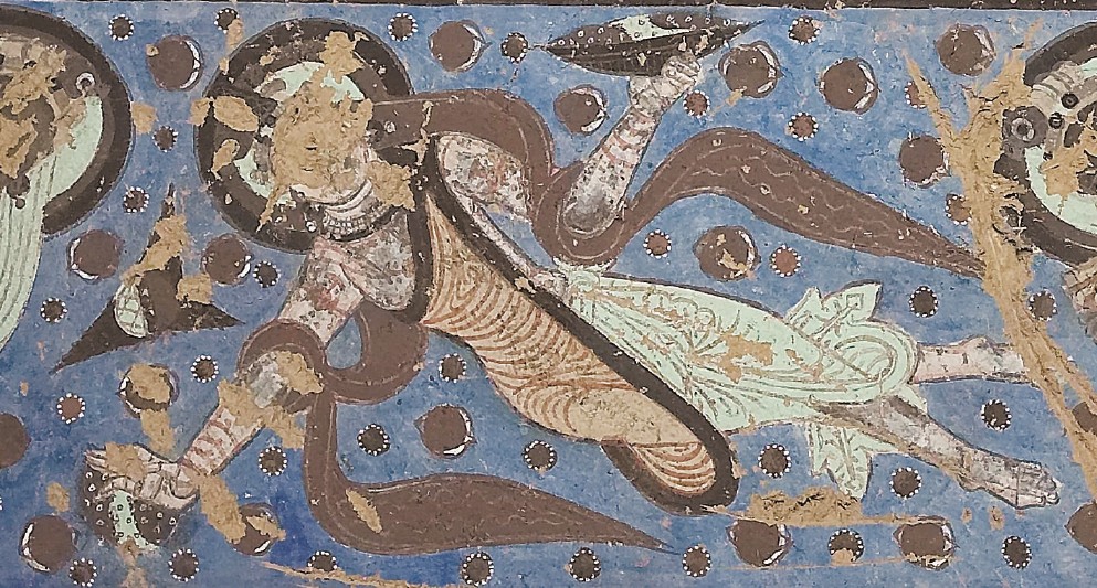 新疆地區(qū)現(xiàn)存最早的壁畫發(fā)現(xiàn)于若羌縣附近屬于古樓蘭、鄯善地區(qū)的米蘭佛寺遺址,這批壁畫以繪于佛寺護(hù)壁上具有古希臘羅馬特征的有翼“天使”而聞名于世。它的發(fā)現(xiàn)者英籍匈牙利探險(xiǎn)家和考古學(xué)家奧里爾·斯坦因如此描述了自己初見這批繪畫時(shí)的驚訝之情:“我不禁為之大吃一驚!在亞洲腹部中心荒涼寂寞的羅布淖爾岸上,我怎么能夠看到這種古典式的天使呢?”“這些壁畫的構(gòu)圖和色調(diào)最接近古典的作風(fēng),完全睜開的大眼睛靈活的注視,小小微斂的唇部的表情,把我的心情引回到埃及托勒密和羅馬時(shí)期木乃伊墓中的希臘少女以及青年美麗的頭部上去了”。這種印象式的描述不足以成為考古溯源或?qū)W術(shù)研究的依據(jù),但一定程度地表達(dá)了米蘭佛寺形象給現(xiàn)代觀者的印象以及疑惑:這是一批帶有較強(qiáng)希臘羅馬古典藝術(shù)風(fēng)格的繪畫,但是,它們?cè)趺磿?huì)以佛畫的形式出現(xiàn)在今天看來遠(yuǎn)離希臘文明影響范圍的西域之地?