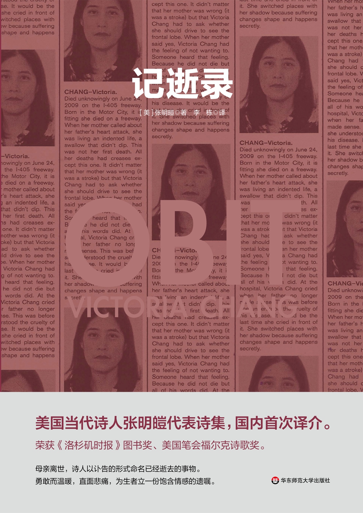 《記逝錄》和《只有一朵玫瑰支撐》都以“記憶與失去”為核心。《記逝錄》是美國詩人張明皚的代表作,主要創(chuàng)作于其母親離世后悲痛焦灼的兩周里。不同于傳統(tǒng)挽歌,詩人以報紙訃告的形式,為逝者及與逝者相關的逝去之物立傳,直面悲痛的同時,為生者留下飽含情感的遺囑。