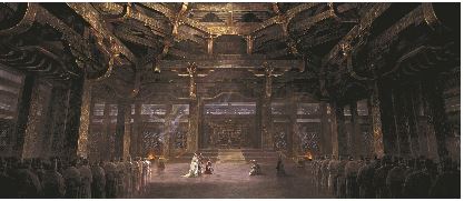 電影美術(shù)指導(dǎo)在影片創(chuàng)作中承擔(dān)著至關(guān)重要的角色。他們不僅是場景的搭建者和造型的設(shè)計者,更是通過視覺元素構(gòu)建世界觀、營造情感氛圍、傳遞文化內(nèi)涵的核心創(chuàng)作者。從場景布置到道具選擇,從服裝設(shè)計到光影運用,美術(shù)指導(dǎo)需要在每一個細(xì)節(jié)中無聲地講述故事,為觀眾搭建起真實可信的銀幕世界。葉錦添在一系列影視和舞臺作品中展現(xiàn)了獨特的東方審美特質(zhì),尤其在“封神三部曲”中,他更是重新詮釋了神話時空,將東方美學(xué)與神話意境完美融合。作為不斷跨界的探索者,葉錦添的多元實踐為當(dāng)代藝術(shù)創(chuàng)作提供了寶貴的經(jīng)驗和啟示。
