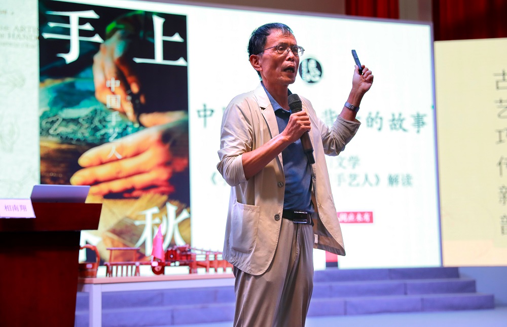首發(fā)式結(jié)束后,“鑿刻時光”文化講座開講,特邀深圳大學(xué)教授、作家南翔主講,以“手上春秋——中國手藝人的故事”為主題,引領(lǐng)現(xiàn)場觀眾走進一段段深沉而溫暖的手藝時光,感受傳統(tǒng)手藝背后敬業(yè)、專注的工匠精神。