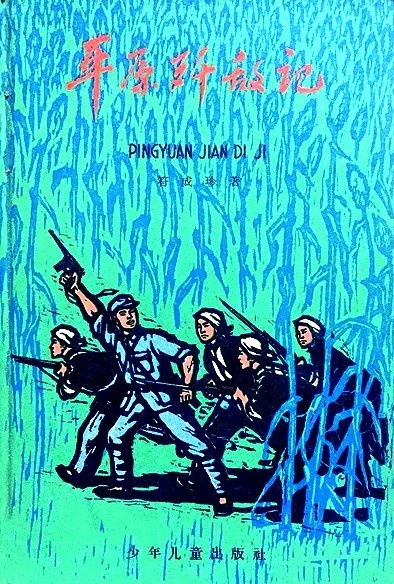 《平原殲敵記》是以華北冀中平原抗日游擊隊斗爭故事為主線的中篇小說,通過十余個源于作者親身經(jīng)歷的獨立篇章,展現(xiàn)了抗日軍民在敵后戰(zhàn)場與日偽軍斗爭的故事。作者符成珍說,其創(chuàng)作初衷是“向青少年講述真實戰(zhàn)斗歷程”,該書于1960年由少年兒童出版社首次出版。封面上,戴白頭巾的民兵隊伍與士兵一起同心抗敵,動勢十足,黑白分明、如刀筆鐫刻般的主體人物形象,在周圍單色環(huán)境的襯托下顯得愈發(fā)高大偉岸。