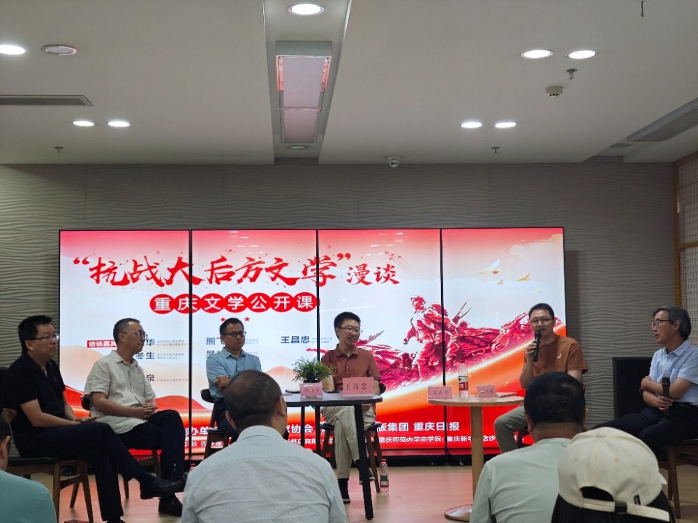 9月2日,由重慶市作家協會、重慶新華出版集團、重慶日報主辦的重慶文學公開課之《“抗戰(zhàn)大后方文學”漫談》在沙坪壩書城舉行。以“抗戰(zhàn)大后方文學”為主題,本場活動的嘉賓們——凌孟華、熊飛宇、王昌忠、付冬生、吳佳駿等專家學者和文學編輯,結合自身創(chuàng)作研究及工作實踐,講述了抗戰(zhàn)時期曹禺、茅盾、冰心等作家及相關文學社團在重慶進行的抗戰(zhàn)書寫,深入解讀了作家在特殊歷史背景下的創(chuàng)作動機、家國情懷和民族氣節(jié),致力于讓塵封的文學記憶被更多公眾所知,助推偉大抗戰(zhàn)精神在當代更好傳承。