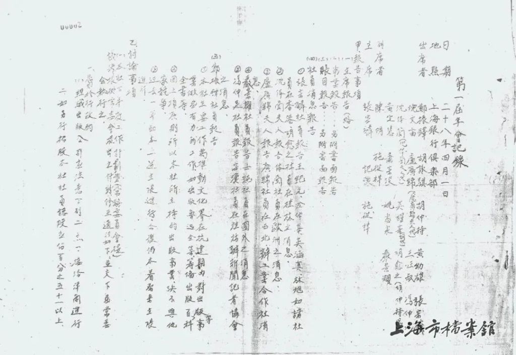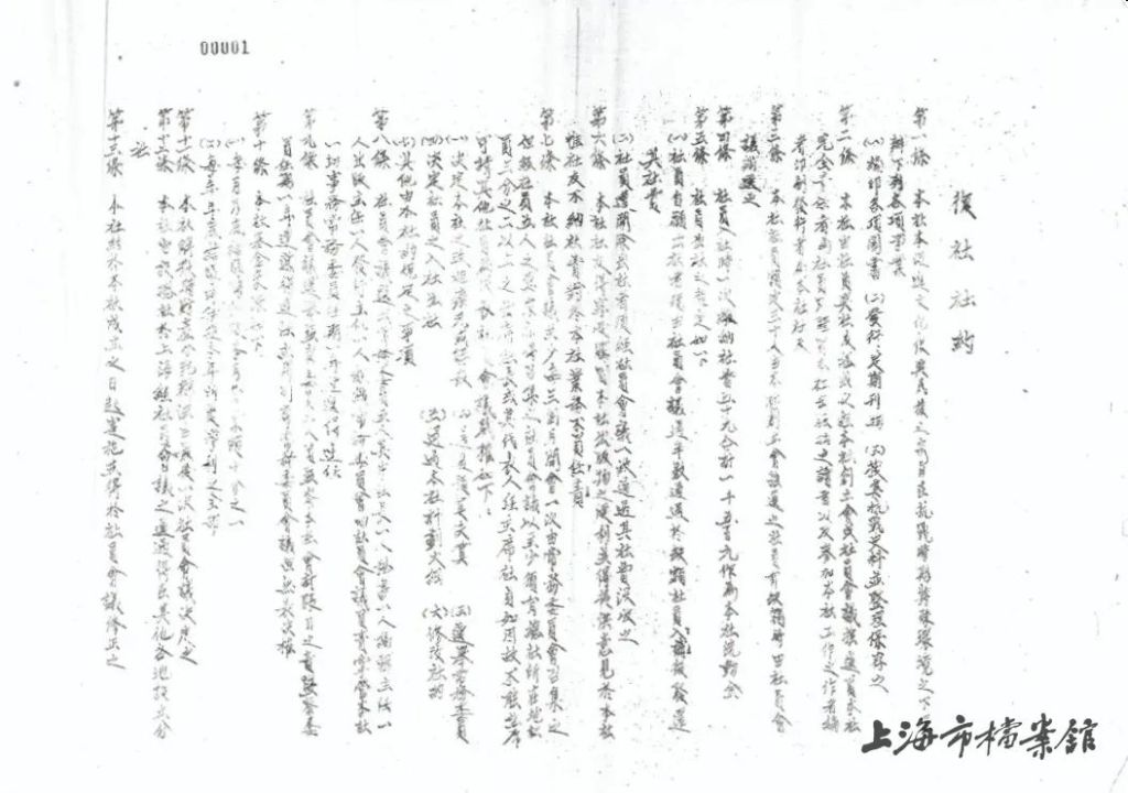 幸運(yùn)的是,上海市檔案館保存有兩件復(fù)社的原始檔案,可窺一斑。檔案一為復(fù)社社約,一為復(fù)社第一屆年會(huì)記錄(1939年4月1日)。