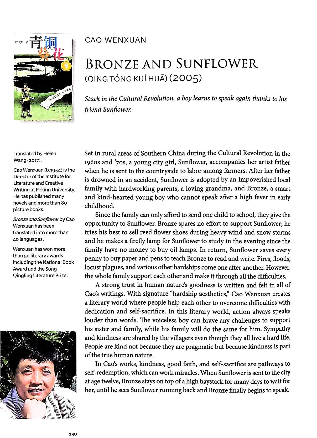 出版于2005年的《青銅葵花》講述了中國(guó)鄉(xiāng)村特殊年代下農(nóng)村男孩青銅與城市女孩葵花之間誠(chéng)摯純真的兄妹情誼,飽含著“詩(shī)意的苦難”與人性的溫情,《奇跡的世界》中該詞條的撰寫者徐德榮教授這樣概括道:“在曹文軒的作品中,善良、誠(chéng)信與自我犧牲是通往自我救贖的途徑,能夠創(chuàng)造奇跡。”二十年過(guò)去了,這份來(lái)自中國(guó)的“奇跡”正在世界范圍內(nèi)撫慰著越來(lái)越多的孩子,截至2025年8月,作品已被譯為26種語(yǔ)言,出版36個(gè)版本,從英,法,德,日,意大利語(yǔ)、阿拉伯語(yǔ)等各大語(yǔ)種,到斯瓦希里文、僧伽羅文等,全世界的孩子正在被蘆花鞋和冰項(xiàng)鏈的故事所深深感動(dòng)著。