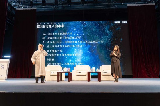 汪暉:剛才我們看到了一場精彩的表演,劉禾老師在新書中也寫到過一位年輕的女病人和“伊莉莎”的人機(jī)對話。和機(jī)器對話很大程度上是和我們自己對話,就像照鏡子一樣。AI不僅能和我們對話,還能根據(jù)指令生成文章、繪畫和音樂,它仿佛成為了一面能動的、有生產(chǎn)能力的“魔鏡”。當(dāng)我們越來越依賴機(jī)器這面魔鏡來表達(dá)和創(chuàng)造時,我們是在借助工具擴(kuò)展自我,還是在將自我的定義權(quán)讓渡給一個由他人算法所定義的反射?我們該如何與這個“鏡中之我”保持一種健康、清醒的距離?如果像剛才這樣的對話繼續(xù)持續(xù)下去,是否可能變成我們看待自我的一種新的方式?劉禾教授,您怎么看待這個現(xiàn)象?