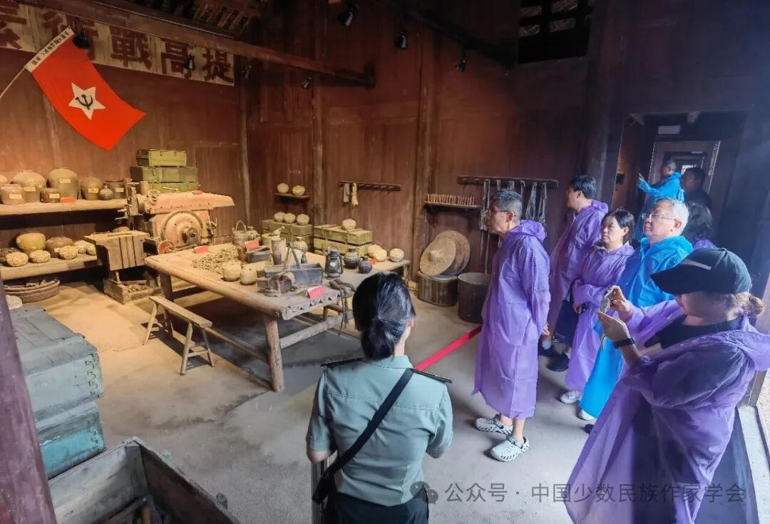 “睡到半夜過,門口在過兵......”歌聲在展廳里回響,作家們安靜肅立,淚光閃閃,心緒隨著歌聲飛揚(yáng),仿佛又回到那段跌宕起伏、波瀾壯闊的紅色歲月。永順縣塔臥鎮(zhèn)“湘鄂川黔革命根據(jù)地”,是中國共產(chǎn)黨在長江南岸建立的最后一塊紅色革命根據(jù)地,紅二、六軍團(tuán)無數(shù)英雄兒女在這里舍生取義。采風(fēng)團(tuán)一行觀看場館文物資料、聽取講解員講解、參觀革命舊址,講解員的歌聲深情寧靜而熾烈,作家們無不為先輩們拋頭顱灑熱血的悲壯而眼含熱淚。
