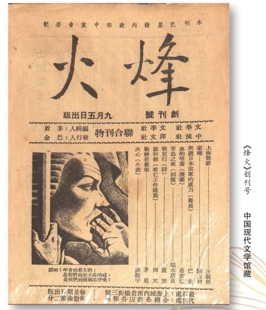 在這一年多的短暫時(shí)光里,《烽火》刊登了大量反映抗戰(zhàn)現(xiàn)實(shí)、鼓舞民眾士氣的優(yōu)秀作品。它的作者隊(duì)伍包含茅盾、巴金、靳以、蕭乾、黃源、唐弢、郭沫若、郁達(dá)夫、劉白羽、駱賓基、葉圣陶、豐子愷等近百位中國(guó)現(xiàn)代文學(xué)和藝術(shù)史上的重要人物。他們用文學(xué)藝術(shù)記錄戰(zhàn)爭(zhēng)的苦難、揭露敵人的罪行,也歌頌了軍民抗戰(zhàn)的英勇無畏,為中國(guó)人民構(gòu)筑起了一道無形的精神堡壘。在近百年前那個(gè)戰(zhàn)火紛飛的年代,《烽火》不僅成為中國(guó)文壇在抗戰(zhàn)初期的重要旗幟,以文學(xué)和藝術(shù)為媒介,深刻反映了特殊時(shí)代民眾的苦難、掙扎與不屈,更為全民族抗戰(zhàn)注入了強(qiáng)勁的文化動(dòng)力,留下了深遠(yuǎn)的精神遺產(chǎn)。