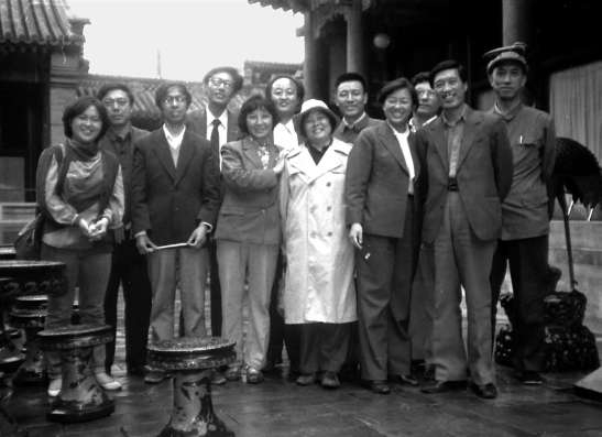 《人民文學》編輯部的出行合影,右二為周明,左一為王南寧。照片由楊學光提供
