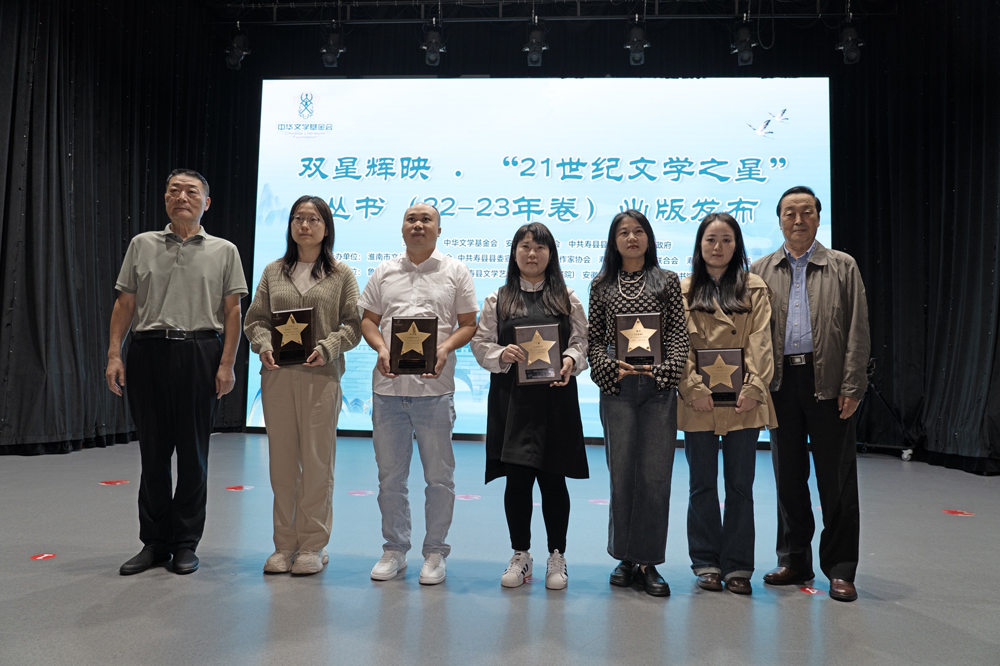 9月29日上午,壽縣文化藝術(shù)中心內(nèi),“21世紀(jì)文學(xué)之星”叢書2022-2023年卷出版發(fā)布會(huì)暨2024-2025年卷征選計(jì)劃啟動(dòng)儀式隆重舉行。中華文學(xué)基金會(huì)理事長施戰(zhàn)軍,安徽省作協(xié)主席陳先發(fā),安徽省淮南市壽縣縣委常委、宣傳部部長饒潔先后致辭。徐貴祥、彭學(xué)明、王躍文、許春樵、羅偉章、哲貴、肖勤、肖江虹等曾入選叢書的作家代表,以及“叢書”編委、評(píng)論家白燁、梁鴻鷹,“叢書”出版單位作家出版社副總編顏慧等出席發(fā)布會(huì)。中華文學(xué)基金會(huì)秘書長安亞斌向壽縣文學(xué)藝術(shù)院捐贈(zèng)“21世紀(jì)文學(xué)之星”叢書簽名本,寓意書籍猶如文學(xué)希望的種子,將在壽縣的文學(xué)土壤中扎根,讓文學(xué)精神在這里延續(xù)。在青春洋溢的音樂中,2024-2025年卷征選計(jì)劃正式啟動(dòng)?;顒?dòng)由中華文學(xué)基金會(huì)文學(xué)部負(fù)責(zé)人趙蓉主持。