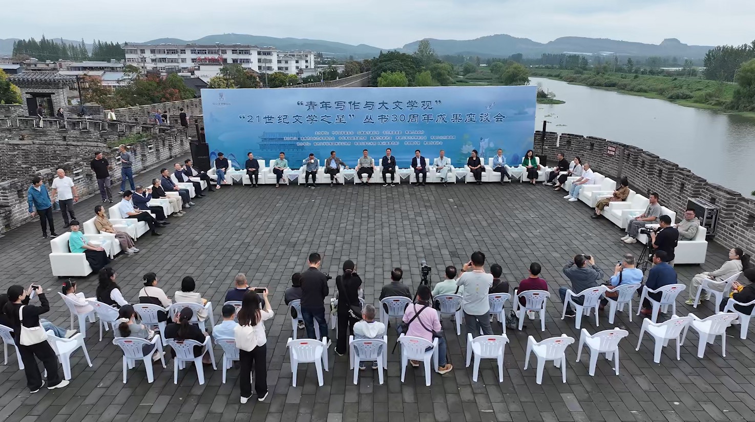 壽縣“賓陽門”城樓上,一場別開生面的文學(xué)座談會(huì)悄然拉開帷幕。“21世紀(jì)文學(xué)之星”叢書編委、往屆入選名家新卷作者等圍坐一圈,身后是奔流的淮河與蒼莽的大別山,他們探討的,是“青年寫作與大文學(xué)觀”這一既關(guān)乎初心、也指向未來的命題。座談會(huì)由施戰(zhàn)軍主持。