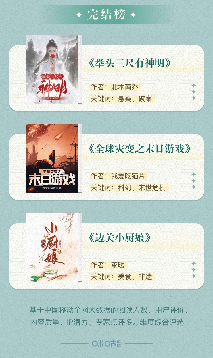 咪咕“悅讀好書榜” 第十期揭曉,現(xiàn)實關(guān)懷與類型突破作品成焦點