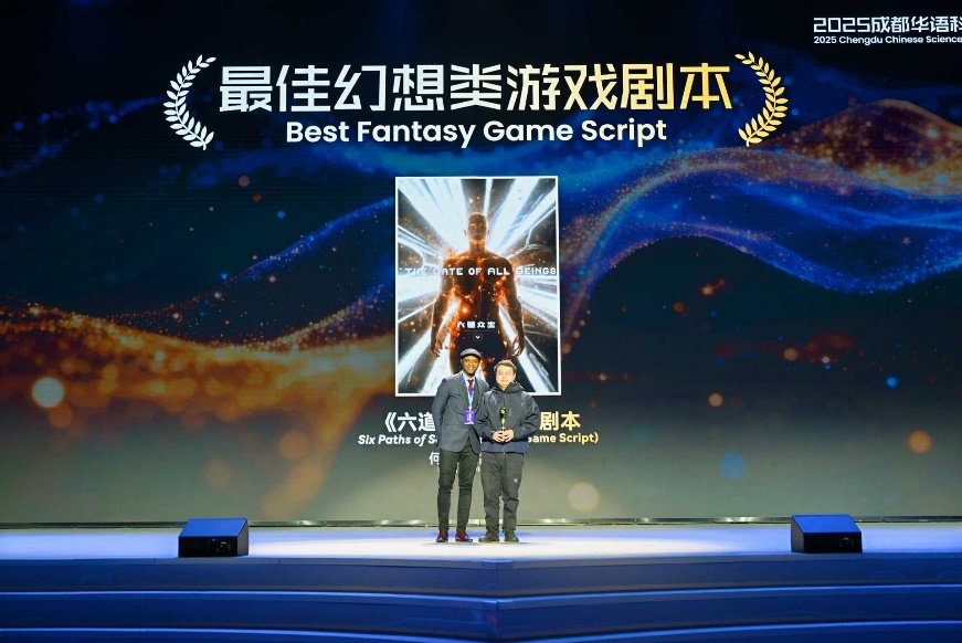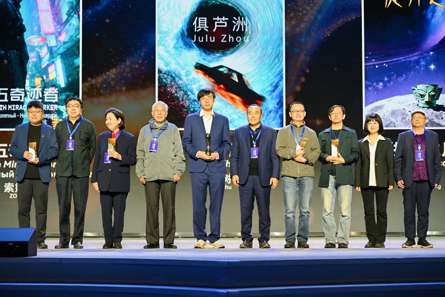 發(fā)布會(huì)上,頒發(fā)了十個(gè)單元類別的獎(jiǎng)項(xiàng),武虹《如愿》獲最佳科幻電影劇本獎(jiǎng); 何夕原著、萬(wàn)象凌云創(chuàng)作的《六道眾生》獲最佳幻想類游戲劇本獎(jiǎng);京東方藝云科技的《啟程:火星》VR大空間航天數(shù)字探索展獲最具影響力IP轉(zhuǎn)化案例;寶樹(shù)《俱蘆洲》獲最佳未來(lái)同行者作品獎(jiǎng);《群星》《三體漫畫(huà)(第一部)》《時(shí)空畫(huà)師》《黑暗森林》《死神永生》《荒潮》《時(shí)間的救贖》《夏之夢(mèng):夏茄英文短篇集》《醫(yī)院》《球狀閃電》獲“十年十部·最受歡迎的科幻文學(xué)翻譯出海作品”獎(jiǎng);寧夏、李天昊、悟江、于笑笑、劉歆妍、孫九聰、光容霆、李思淇、林思睿、歐陽(yáng)子毅獲最佳青少年科幻作家獎(jiǎng);《太陽(yáng)墜落之時(shí)》《傻子:殼榮耀與幸存者》《零》《迴》《萬(wàn)物生》獲年度科幻AI視頻作品獎(jiǎng);段子期《倍速世界》獲最佳短篇科幻作品獎(jiǎng);阿缺《永恒列車》獲最佳中篇科幻作品獎(jiǎng),羅夏《腦中之魔》獲最佳長(zhǎng)篇科幻作品獎(jiǎng)。