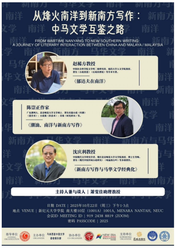 近日,由中國(guó)作家協(xié)會(huì)外聯(lián)部指導(dǎo),馬來西亞中國(guó)文學(xué)讀者俱樂部主辦,馬來西亞漢文化中心、南方大學(xué)學(xué)院與新紀(jì)元大學(xué)學(xué)院共同承辦的“新南方、新南洋”文學(xué)思潮海外推廣系列活動(dòng)在馬來西亞舉辦,中國(guó)作家陳崇正、學(xué)者趙稀方和沈慶利赴馬與馬來西亞文學(xué)界人士充分交流,開展了一系列充滿思想深度的對(duì)話。