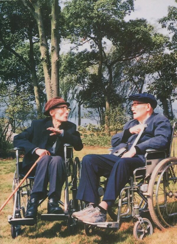您書里寫到您祖父和巴金的交往,文章的結(jié)尾是關(guān)于您祖父和巴金最后一張合影的——兩位老人坐在輪椅上,戴著遮陽帽,您說“我祖父用他與生俱來的幽默對(duì)這張照片做了點(diǎn)評(píng):‘兩個(gè)叫花子’”。僅從這一句點(diǎn)評(píng)就能感受到夏衍是個(gè)非常有趣的人,所以想請(qǐng)您再舉例講講您祖父的幽默感。