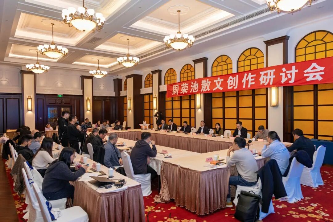 10月31日,由江蘇省作協(xié)主辦、江蘇文學(xué)院承辦的“周榮池散文創(chuàng)作研討會”在南京舉行。中國作協(xié)黨組成員、副主席吳義勤視頻講話。江蘇省作協(xié)黨組書記、書記處第一書記、副主席鄭焱,百花文藝出版社社長薛印勝,揚州市委宣傳部副部長江勇,高郵市委常委、宣傳部部長趙國祥出席并致辭。作家周榮池及10余位專家學(xué)者參加。會議由江蘇省作協(xié)黨組成員、書記處書記、副主席魯敏主持。