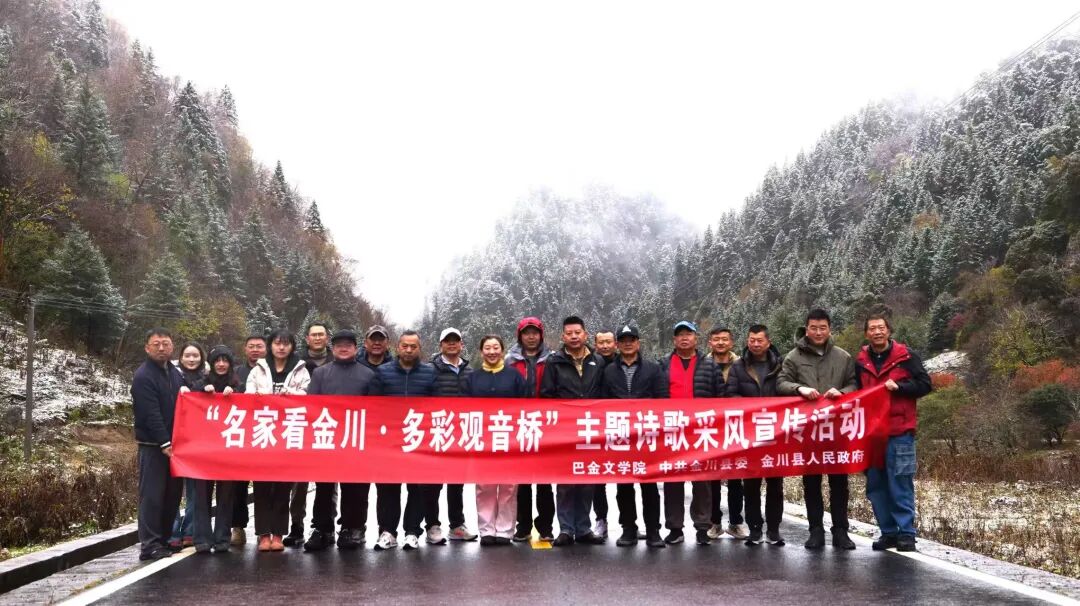 10月31日至11月2日,川西高原寒意正濃,金川縣觀音橋地區(qū)大雪紛飛。由巴金文學(xué)院、中共金川縣委、金川縣政府主辦的“名家看金川·多彩觀音橋”主題詩歌采風(fēng)創(chuàng)作活動舉辦,來自巴金文學(xué)院的13名簽約作家冒雪前往金川縣觀音橋鎮(zhèn)麥斯卡村、觀音村、毛日藏寨等地,開展“深入生活、扎根人民”主題文學(xué)創(chuàng)作活動,在風(fēng)雪高原中捕捉靈感、汲取創(chuàng)作養(yǎng)分。
