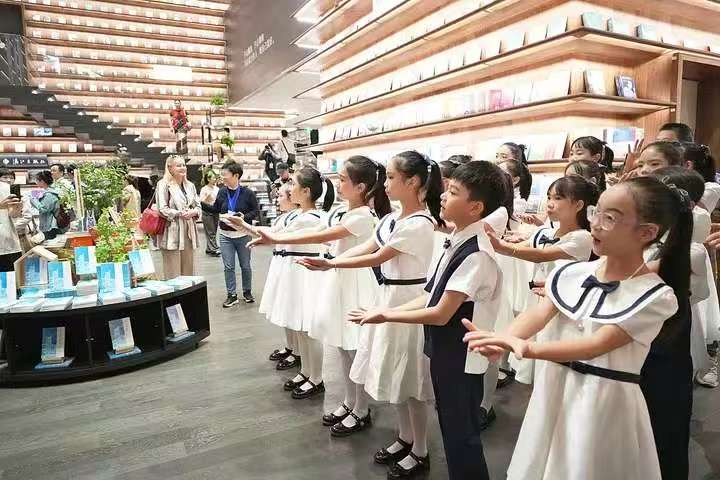 綠城少年合唱迎接遠道而來的詩人。主辦方供圖