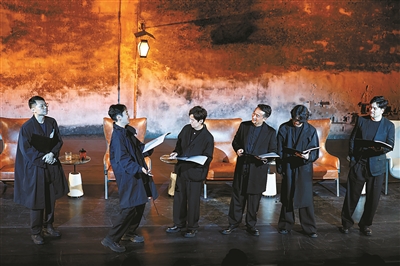 《農莊館客人》是一部以二戰(zhàn)末期為時代背景,探討科學倫理與人道主義危機的嚴肅作品,在本屆戲劇節(jié)進行劇本圍讀時引發(fā)關注。觀眾在飛機轟鳴聲、現(xiàn)場演奏營造的氛圍中,跟隨演員亦莊亦諧的表演進入劇情,帶有思辨意味的扎實文本釋放出強大的能量。