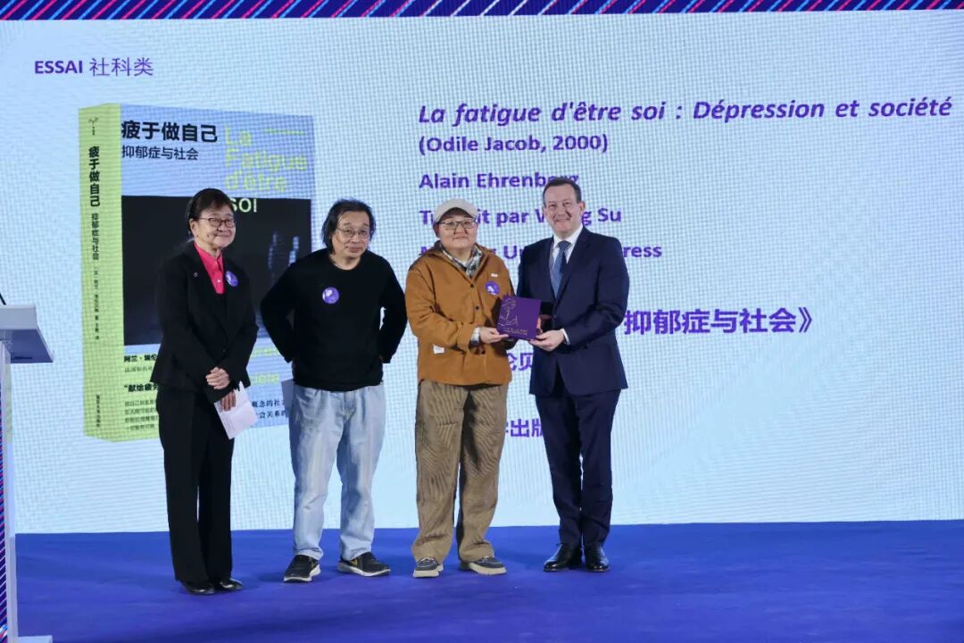 從左到右:傅雷獎常任評委博杰,傅雷獎常任評委余中先,趙天舒,法國駐華大使館文化、教育與科學(xué)事務(wù)公使銜參贊艾文鴻