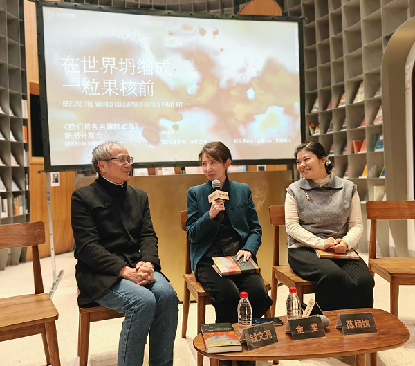 發(fā)起于上海的詩歌團(tuán)體“城市漫游者”出版了《我們將各自輾轉(zhuǎn)如島:城市漫游者詩選》(2025),中國社會(huì)科學(xué)院周瓚教授曾以“寫詩的女巫”一語形容該詩集呈現(xiàn)出的獨(dú)特面貌。日前,“城市漫游者”主要成員在思南書局·詩歌店相聚,就詩歌選集舉辦了新書分享會(huì)兼詩歌朗讀會(huì)“在世界塌縮成一粒果核前”,與華東師范大學(xué)教授金雯、書評人陳嫣婧、上海大學(xué)教授錢文亮等特邀嘉賓,以及到場讀者一起分享創(chuàng)作。