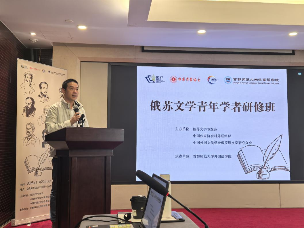 為賡續(xù)中俄文學(xué)交流傳統(tǒng),深化兩國(guó)人文合作,2025年11月22日至23日,“俄蘇文學(xué)青年學(xué)者研修班”在京成功舉行。作為“俄蘇文學(xué)書友會(huì)”的重要活動(dòng)之一,本次研修班由中國(guó)作家協(xié)會(huì)對(duì)外聯(lián)絡(luò)部、中國(guó)外國(guó)文學(xué)學(xué)會(huì)俄羅斯文學(xué)研究分會(huì)主辦,首都師范大學(xué)外國(guó)語學(xué)院承辦,旨在凝聚青年人才、提升研究水平,積極構(gòu)建俄蘇文學(xué)研究的“中國(guó)學(xué)派”?!岸硖K文學(xué)書友會(huì)”是在中宣部文藝局的指導(dǎo)下,由中國(guó)作協(xié)外聯(lián)部聯(lián)合有關(guān)部門發(fā)起的常態(tài)化、專業(yè)化、公眾化的中俄人文交流平臺(tái)。