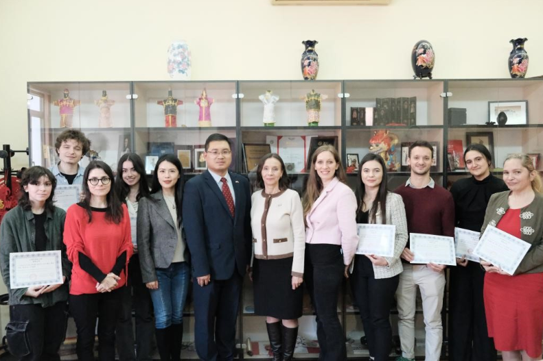 當地時間11月24日下午,首屆中羅文學作品翻譯大賽頒獎儀式在布加勒斯特成功舉辦。該比賽由布加勒斯特大學孔子學院主辦、中國駐羅馬尼亞大使館支持。中國駐羅馬尼亞使館教育事務專員周國寧,布加勒斯特大學孔子學院羅方院長白羅米、中方院長蘇宇以及布加勒斯特大學外國語言和文學學院教師包心茹、安德出席。獲獎選手代表、孔院師生和布大中文系學生40余人參加活動。蘇宇主持頒獎儀式。