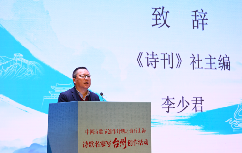 李少君在致辭中表示,臺(tái)州,是一座被詩歌浸潤(rùn)的城市,這里是浙東唐詩之路的目的地,是詩人們心向往之的文化圣地。今天,我們依然能在這片土地上感受到那份跨越千年的詩心與詩意。期待各位詩人為臺(tái)州的山海賦予新的情感的溫度,為臺(tái)州的故事插上詩意的飛翔的翅膀,讓更多人通過詩歌這扇窗,看見一個(gè)立體生動(dòng)、充滿魅力的新時(shí)代臺(tái)州。